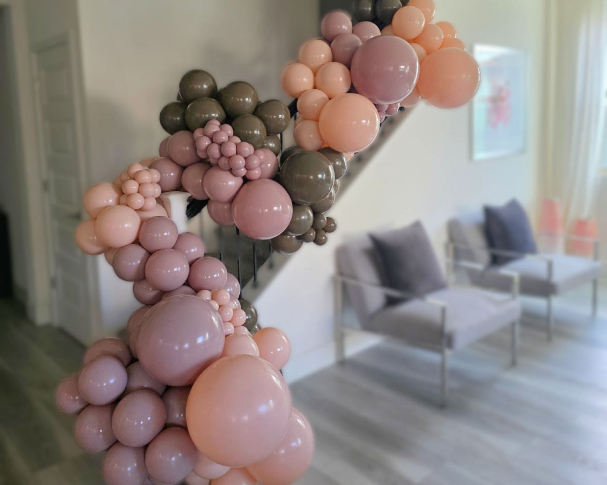 If you can envision it, we can create it. Our MUSE Garlands let the balloons do the talking — no panels, boards, or backdrops needed. Handcrafted and artfully draped, each garland is designed with layered textures and organic shapes. From ceilings to staircases, doorways, mantles, and even small spaces, we create custom installations tailored to any style or setting.